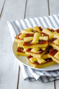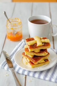 Intanto vi presento questi quadrotti con confettura di albicocca, realizzati con farina 1 e farina di mais, li ha preparati mia figlia Clelia e sono davvero buonissimi, si sciolgono in bocca!